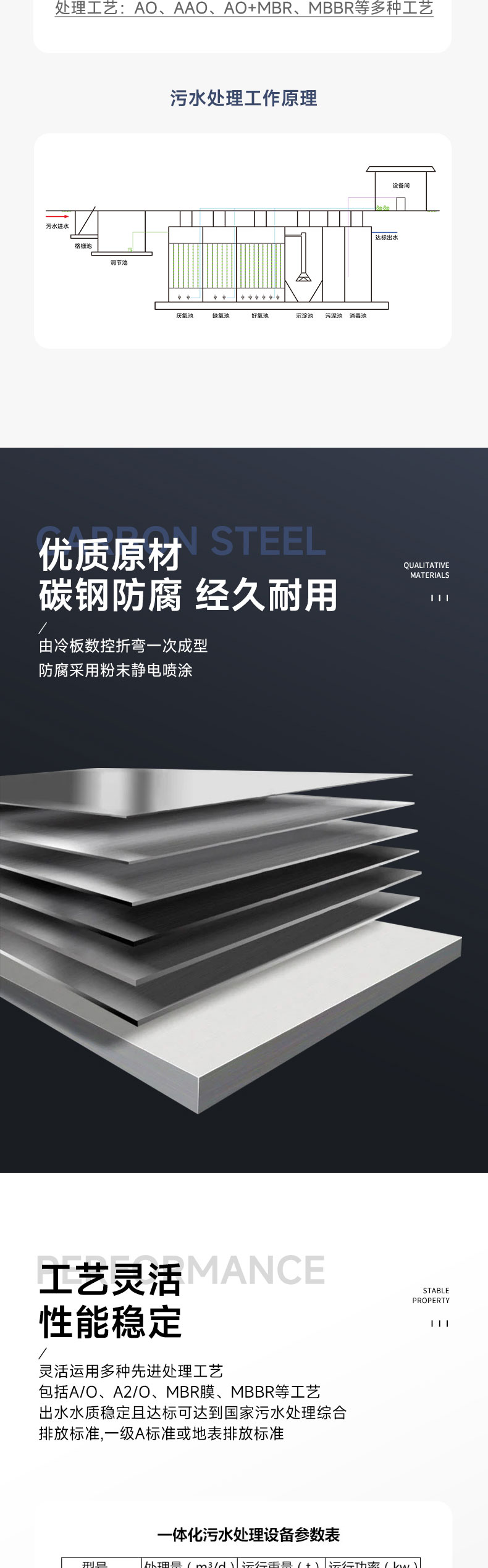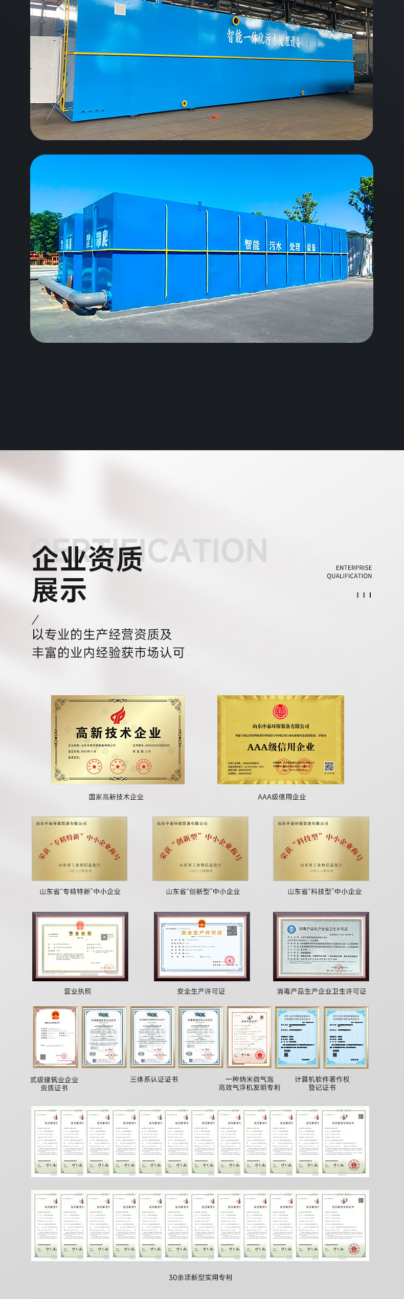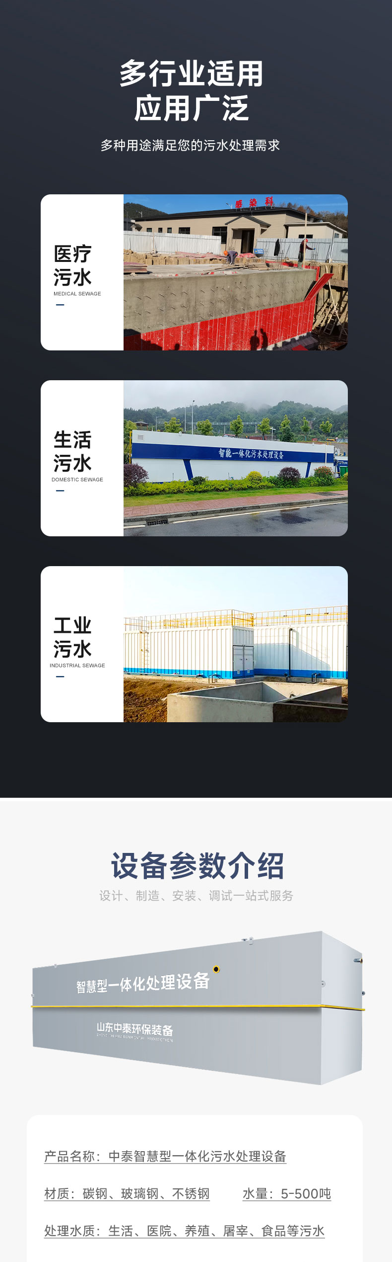 - 1.設備簡介集裝箱式污水處理設備是中泰環保研發的一款用于處理各種水量的一體化處理設備。根據處理水量的不同,并結合是否采用標準集裝箱尺寸,設備大小會做出相應調整。傳統工藝制作的集裝箱板是由輥壓機輥軋而成,主要用于汽車、海運標準集裝箱,也可用作設備外包裝使用。如果用來生產一體化污水處理設備,承壓和壽命不滿