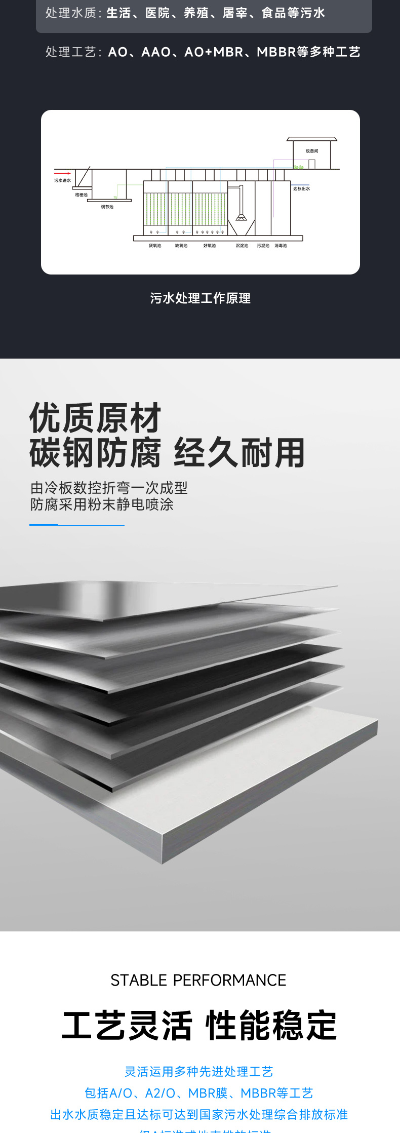 - 1.設備簡介MBR膜生物反應器(Membrane Bio-Reactor,MBR)為膜分離技術與生物處理技術有機結合之新型態廢水處理系統。以膜組件取代傳統生物處理技術末端二沉池,在生物反應器中保持高活性污泥濃度,提高生物處理有機負荷,從而減少污水處理設施占地面積,并通過保持低污泥負荷減少剩余污泥量。主要利用沉浸于好氧生物池之內