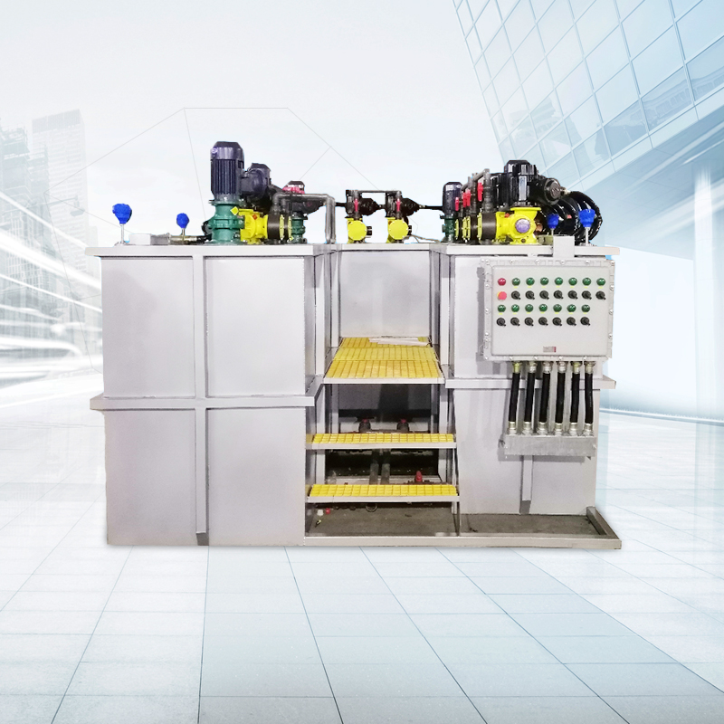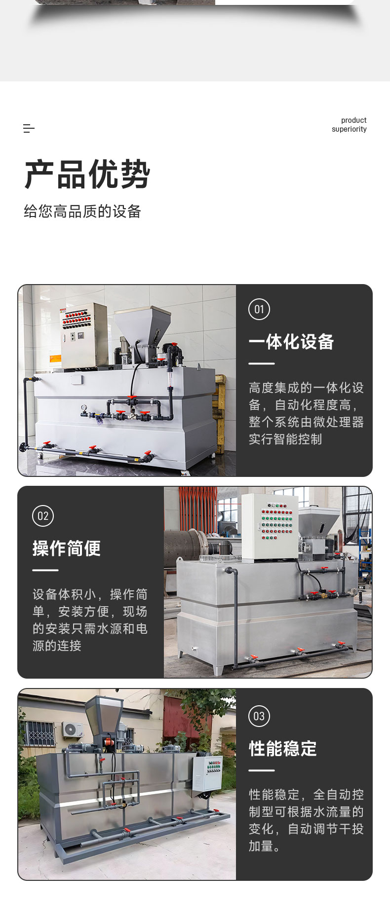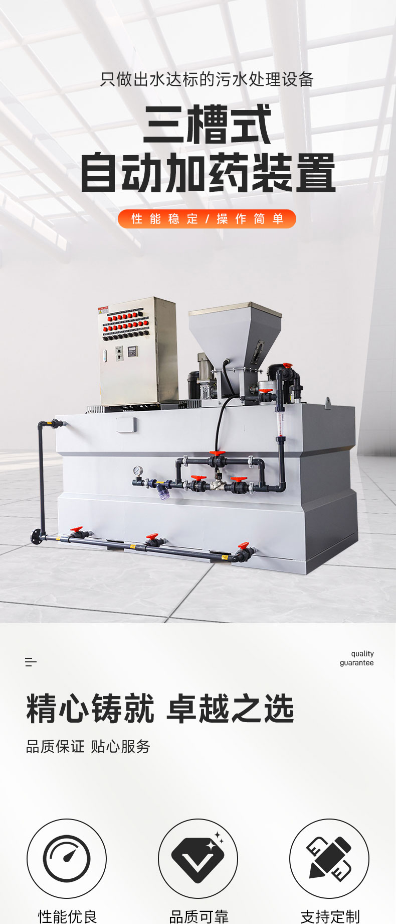 - 一、三槽式自動溶藥裝置的簡介三槽式自動溶藥裝置連續(xù)調(diào)配聚合物溶液的自動化設備機器。主要由三腔藥箱、自動吸料機、自動溶粉機、自動配水系統(tǒng)、出藥系統(tǒng)、就地電氣控制系統(tǒng)等組成。加藥螺旋采用變頻調(diào)速可滿足固體和液體絮凝劑的自動制備。中泰-三槽式自動溶藥裝置圖片二、三槽式自動溶藥裝置的工
